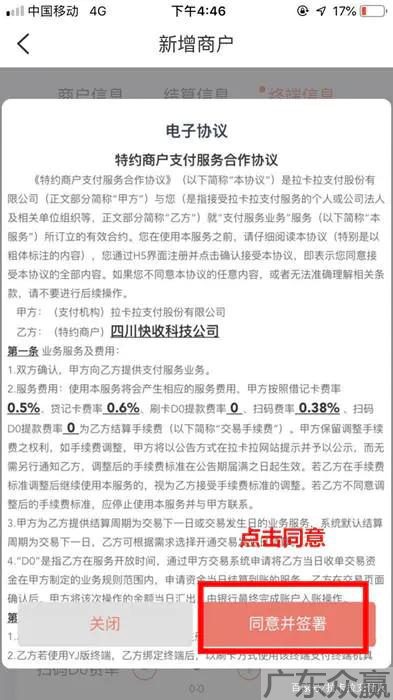 4.系统会生成一个电子版的协议,该协议为拉卡拉新增特约商户的模板协议,同意并签署的可以了。