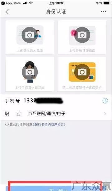 第三步:身份证认证(需要商户身份证正反面,手持身份证,结算银行卡正面),然后人脸识别,再确认下去