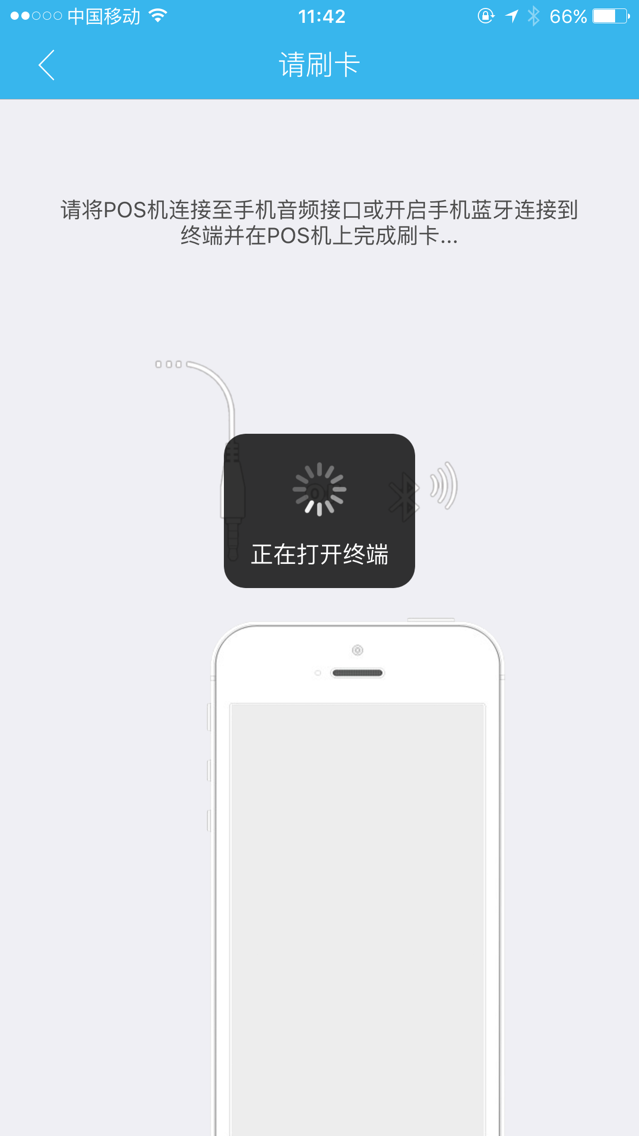3、开始刷卡:出现下图此时手机与POS机蓝牙配对