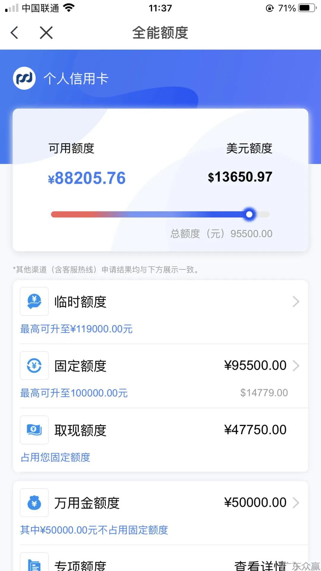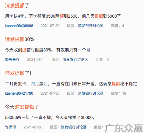 还有一位卡友的浦发卡在今年2月份提的固定,这次7月底又给提了一波额度,虽然幅度不大只提了1.1万,但能提还是很不错的。