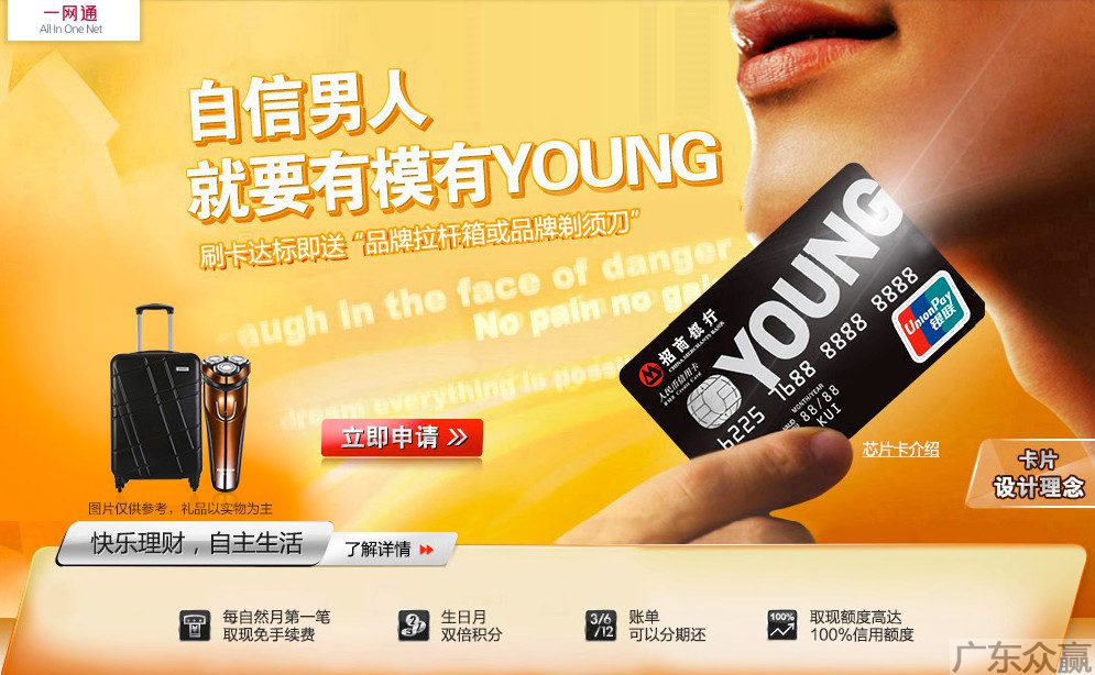 开卡新户礼,9块钱电影票、免费接送机、VIP贵宾厅等,刷卡消费积分兑换礼品,五星级酒店、机票都能搞定。