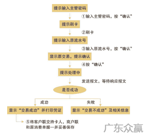 消费撤销交易与消费交易需在同一台POS上进行操作,操作流程如下: