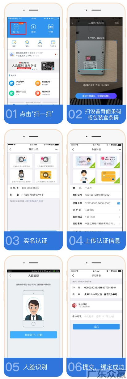 4、进行人脸识别认证,提交结算银行卡信息,完成认证。